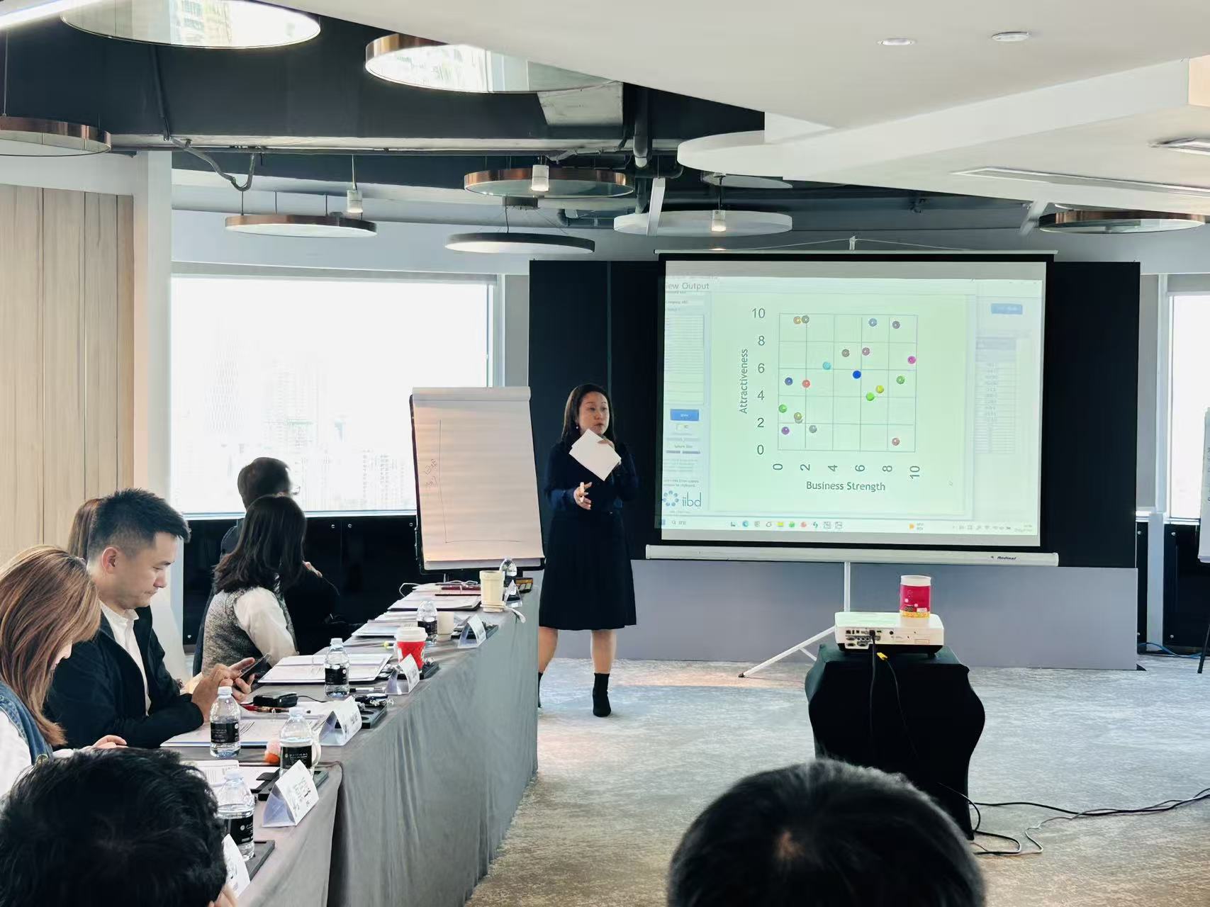 到了当前,每家公司都有多个产品嗷嗷待哺,Carolyn老师问大家,你们是如何决定每个“儿子”之间投资多少资金的?以及现实工作中,你们如何决定不同产品之间如何投资?有没有什么被证实有效的方式?并且引出了BCG矩阵。本期项目迎来了北大战略研究所所长仲为国教授。他在听了BCG矩阵后感慨说,我们学术界定义自己是知识的创造者,BCG矩阵是多少年前推出的工具了,但这样经典的工具,绝大多数企业都不会用。他说我们平时给高管上课鼓励大家决策科学,但是效果并不好。但是在赛拔,就一个BCG的绘制,X轴0.1-1,就让学员明白说之前决策并无章法,以及如果要做战略,就必须还得需要产品竞品市场的相关数据,放上去进行全局判断。本期的学员在理解完BCG矩阵底层逻辑,包括与产品生命周期的关系,X轴为什么是RMS(为什么RMS如此重要)以及Y轴为什么是市场增速后,每组都绘制了他们在模拟当前的产品组合矩阵。快速地形成了,问题在哪里,机会在哪里,下一步怎么办这样的共识。